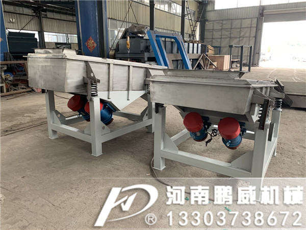 直線振動篩由雙振動電機驅動。當兩臺振動電機同步、反向旋轉時,偏心塊產生的激振力在平行于電機軸線的方向上相互抵消,并沿垂直于電機軸線的方向疊加。因此,篩機的軌跡是一條直線。兩個電機軸相對于篩面具有傾角。在激振力和物料自重的共同作用下,物料在篩面上被拋起向前跳躍作直線運動,從而達到對物料進行篩分分級的目的。可用于實現流水線中的自動化作業。具有能耗低、效率高、結構簡單、維修方便、全封閉結構、無粉塵外溢等特點。篩目數為0-120目,可篩出7種不同粒度的物料。