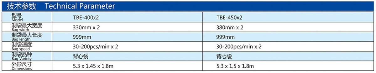 YXMB-400×2/450×2型全自動熱封熱切制袋機【新款】