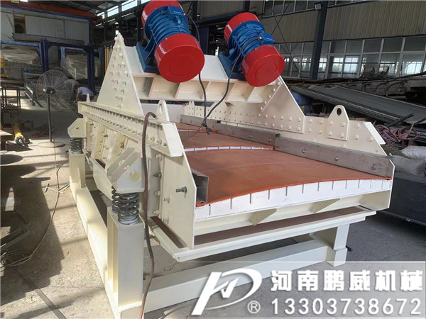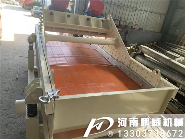 給礦器把礦漿均勻地灑在篩面上端。篩面上的物料由于連續(xù)受到高頻率小振幅的振動(dòng),在傾斜的篩面上做作連續(xù)的跳躍,使物料分散,細(xì)粒物料在調(diào)勻的過(guò)程中透過(guò)篩孔稱為篩下產(chǎn)品,而大于篩孔的物料在傾斜的篩面上作連續(xù)的向前跳躍,跳出篩網(wǎng)成為篩上產(chǎn)品。但是作用于不同物料時(shí),脫水篩的構(gòu)造還是有所不同的,比如水洗砂生產(chǎn)線上的砂石脫水篩和選礦廠常用的尾礦脫水篩就是不同的設(shè)備。高頻振動(dòng)篩的振動(dòng)器運(yùn)用了共振原理,雙質(zhì)體臨界共振狀態(tài)工作,所需驅(qū)動(dòng)功率小,在啟動(dòng)時(shí)無(wú)大的啟動(dòng)電流,噪聲低。高頻振動(dòng)篩篩框采用橡膠彈簧懸掛支撐,噪音低,功耗小,設(shè)備動(dòng)負(fù)荷小,故對(duì)安裝基礎(chǔ)無(wú)特殊要求。高頻振動(dòng)篩在篩體振動(dòng)的同時(shí),篩片的篩條之間也產(chǎn)生相對(duì)的顫動(dòng),篩片縫隙不易堵。